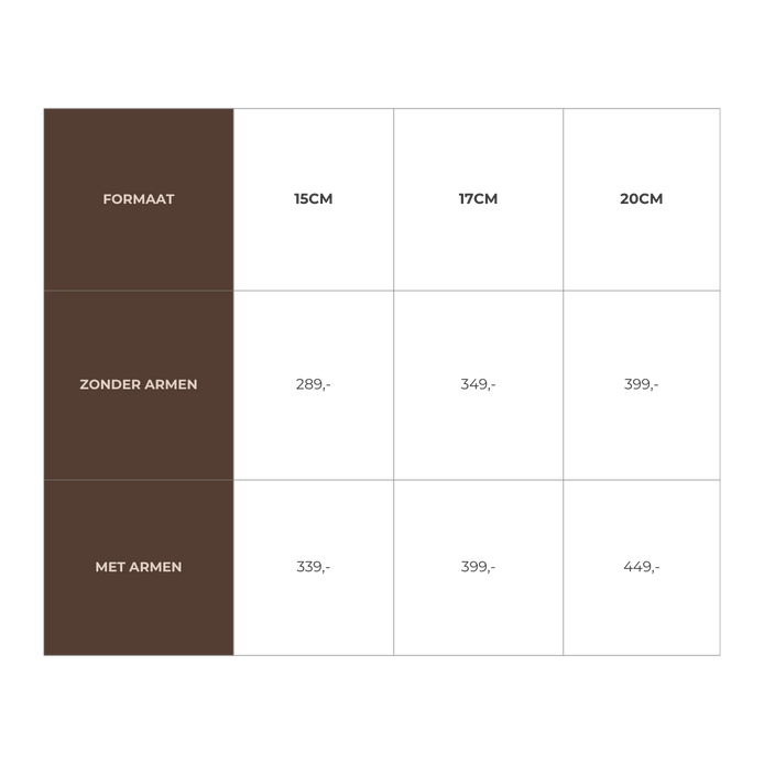 Alle beeldjes kunnen verzwaard worden (voor €50 extra), en er zijn verschillende kleurmogelijkheden. Dit kun je rustig bekijken en bespreken in onze studio.