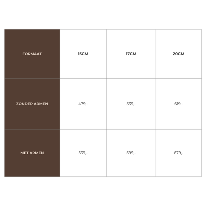 Alle beeldjes kunnen verzwaard worden (voor €50 extra), en er zijn verschillende kleurmogelijkheden. Dit kun je rustig bekijken en bespreken in onze studio.
